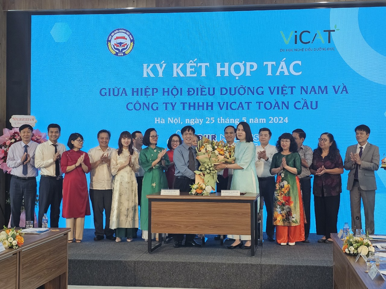 Nhân dịp này Hiệp hộ Điều dưỡng Việt Nam cùng Công ty TNHH Vicat Toàn Cầu và Công ty Cmind Solution GmbH đã ký biên bản ghi nhớ về việc hợp tác để cùng thực hiện dự án đưa điều dưỡng viên Việt Nam sang học tập và làm việc tại Cộng hoà Liên bang Đức.