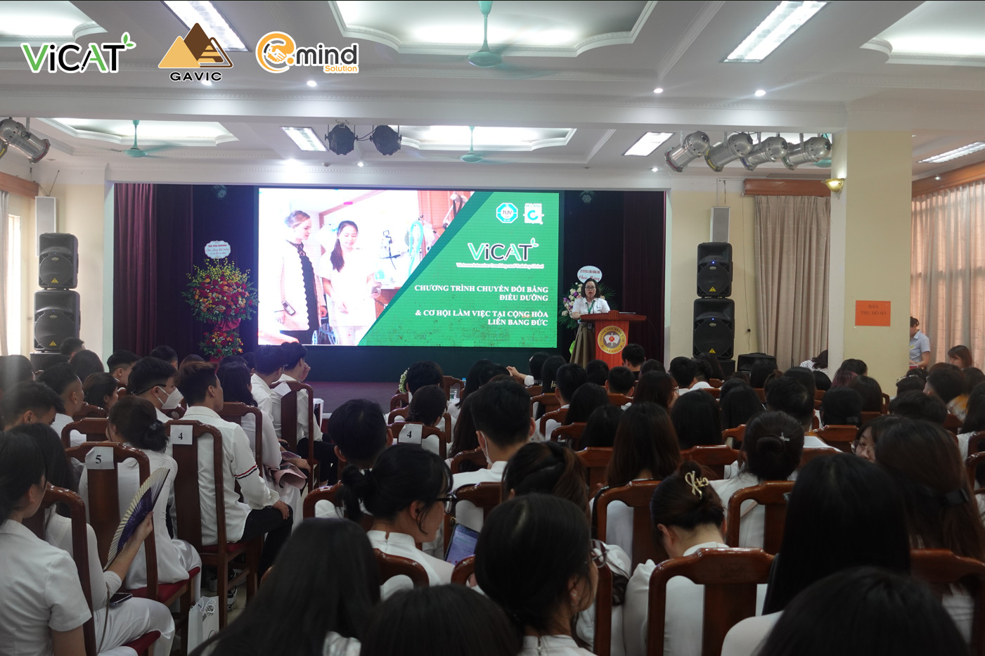 Trong khuôn khổ ngày Lễ trao bằng tốt nghiệp cao đẳng chính quy cho sinh viên đợt 1 năm 2023, dự án GAVIC đã có mặt tại hội trường lớn trường Cao đẳng Y tế Hà Nội để chúc mừng thầy trò nhà trường cũng như trao đổi về dự án GAVIC – Chuyển đổi bằng điều dưỡng Đức tới các tân cử nhân điều dưỡng. Buổi lễ có sự tham gia của hơn 600 cử nhân điều dưỡng, cùng với đó là các tân cử nhân các chuyên ngành khác như: Hộ sinh và Kỹ thuật hình ảnh.